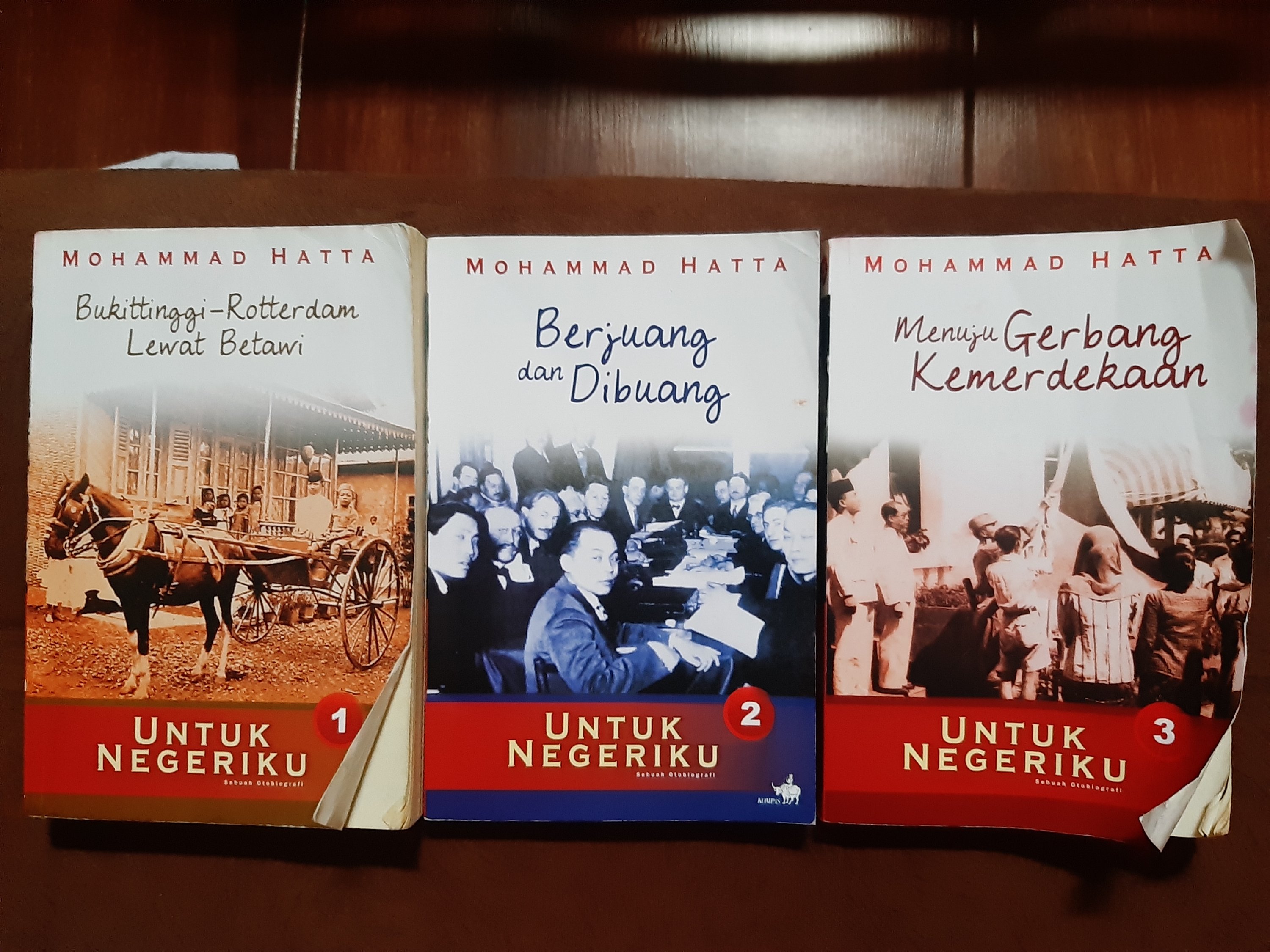 Buku ini pengembangan dari biografi Moh.Hatta: Memoir yang pertama diterbitkan pada tahun 1979, satu tahun sebelum Hatta meninggal dunia (Maret 1980). Hatta menuliskannya setelah tahun 1969 setelah bukunya berjudul “Sekitar Proklamasi” diterbitkan. Jumlah total halaman buku ini sekitar 805 halaman disadur menjadi 3 jilid buku ini (saya sebut trilogi saja ya). Jujur, ini salah satu buku terlama yang saya baca, bukan karena 800 halaman, tetapi memang diksi dan narasi bacaannya memang zaman dulu sekali. Padahal di versi trilogi buku ini, narasinya sudah banyak yang disesuaikan oleh Meutia Hatta (putri Moh.Hatta) dan sudah tidak ada sama sekali yang menggunakan ejaan lama, kecuali beberapa lampiran (untuk menjaga keaslian sumber). Saya belum pernah membaca versi yang pertama (Memoir), namun bisa membayangkan bagaimana akan kesusahan membaca yang versi pertama.
