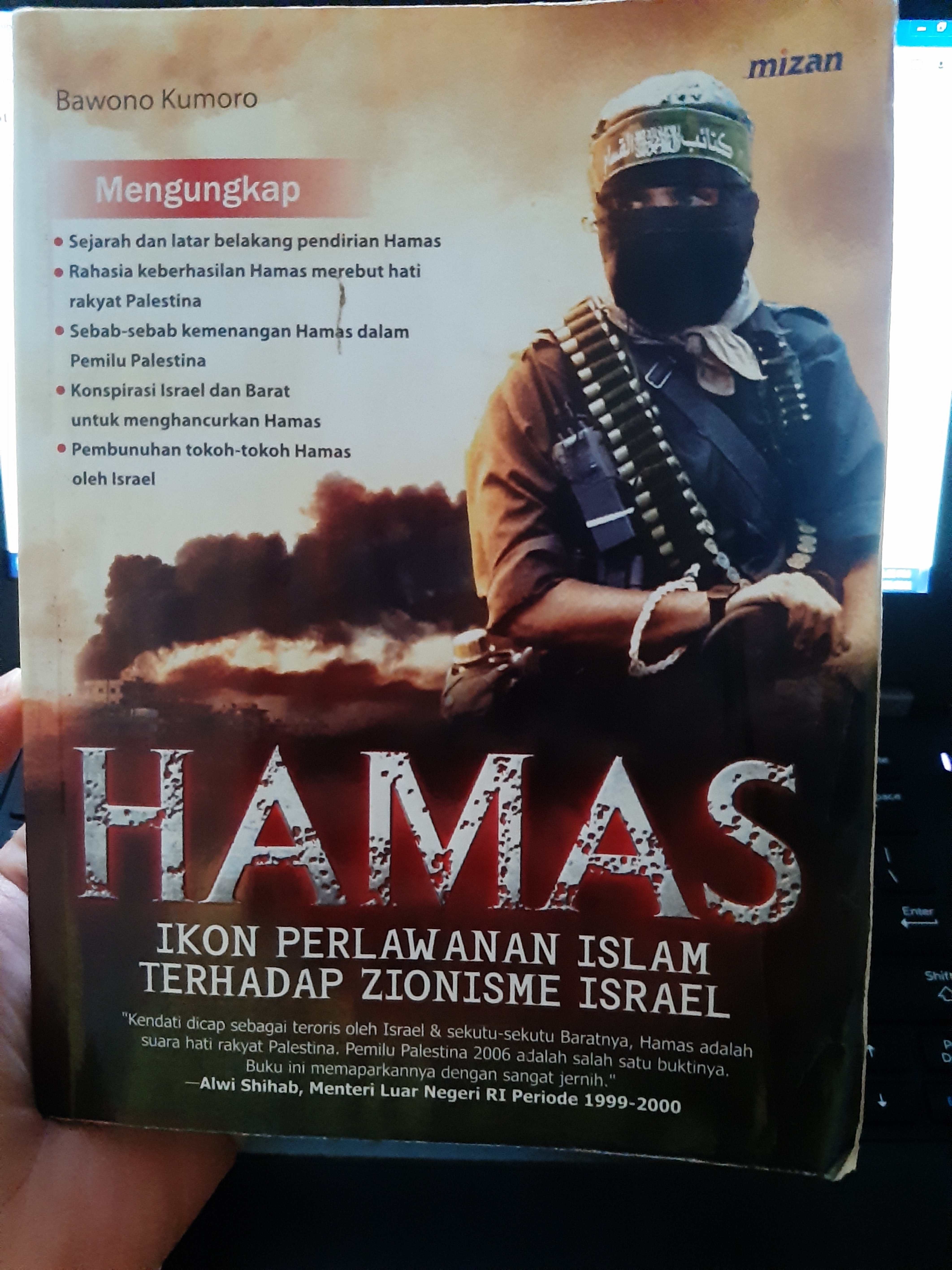 Don’t judge the book by its cover, kata pepatah gitu. Kalau kata saya, don’t judge the book, just don’t. Kalau lihat cover nya, Buku Bawono Kumoro ini terkesan ekstrim, aslinya tidak sama sekali. Buku ini adalah pengembangan dari skripsi Mas Bawono di Fakultas Ushuluddin dan Filsafat Universitas Islam Negeri (Syarif Hidayatullah) Jakarta, diapresiasi dan direview oleh beberapa tokoh negara penting seperti Alwi Shihab, mantan Menteri Luar Negeri yang saat buku ini dipublikasi menjabat sebagai Utusan Khusus RI untuk Timur Tengah, Din Syamsudin waktu itu belum jadi Ketua MUI masih sebagai Guru Besar UIN, dan Abdillah Toha dari Komisi I DPR RI. Sumber informasi Mas Bawono adalah dari buku dan jurnal nasional maupun Internasional kajian studi Timur Tengah, buku populer Karen Arsmtrong juga termasuk yang dirujuk oleh penulis. Ditambah informasi dari tulisan yang pernah terbit di media berita nasional. Bahasanya mudah, struktur topik dan alur narasinya rapi, enak sekali membacanya meskipun minim ilustrasi bagan atau sejenisnya. Paket komplit untuk membuka pemahamam sejarah awal Palestina, kaitannya dengan Perang Dunia, Zionisme dan anti-semitisme, latar belakang Hamas hingga kiprahnya sampai saat ini. Untuk buku yang terbit 12 tahun lalu (cetakan pertama di tahun 2009 dan saya beli di Jakarta Festival 2010), informasi di dalamnya masih sangat relevan.